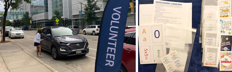 Volunteers will pick-up supply bundles with printed flash cards and supporting materials then take them home or back to their workplace, tear apart the cards, organize the decks, write a note of encouragement for each bundle and assemble. It's super easy and fun too!