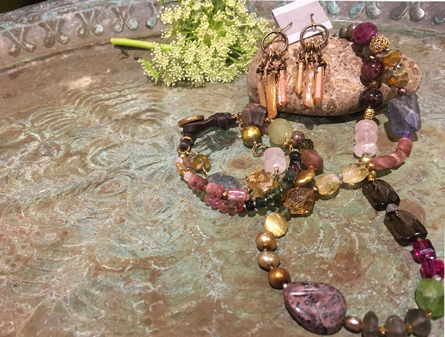 Lisa enjoys attending gem shows and choosing the perfect freshwater pearls, aquamarine, and other gems for her pieces. “I feel like Julia Child going to the French market,” says Lisa. “I look carefully at each gem and pick out the best ones. That is where I draw inspiration – from stones and gems that are not hand-made, but God-made.”