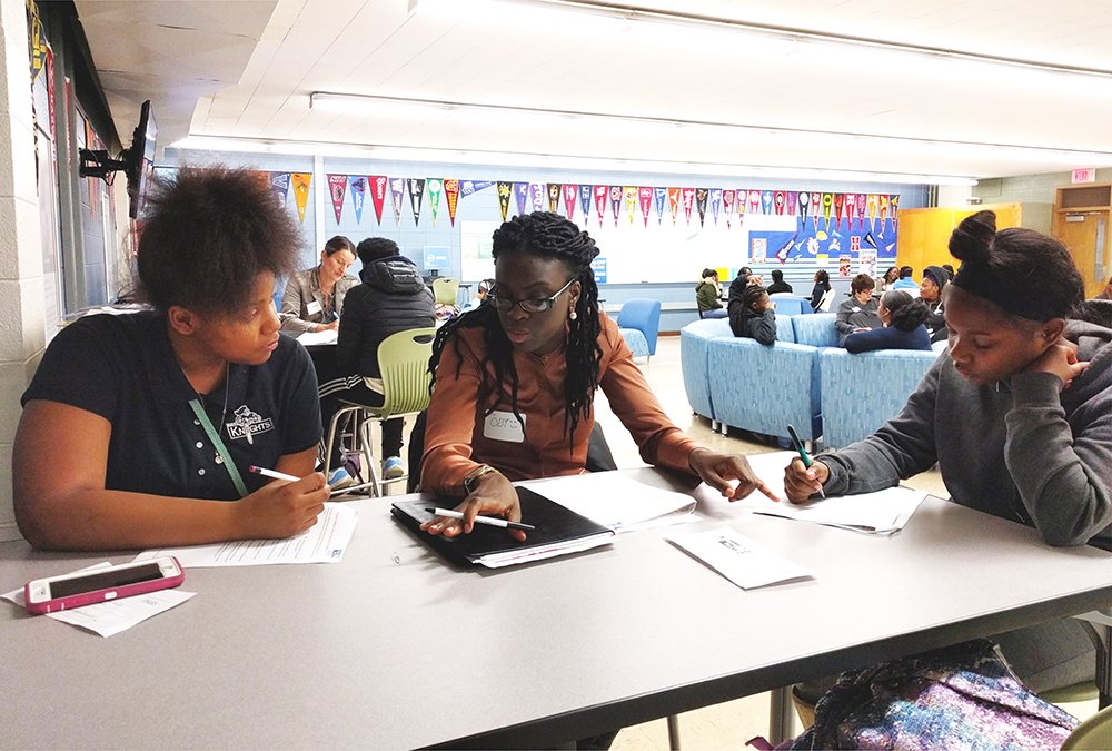 Volunteers are matched one-on-one or one-on-two with students and have candid conversations around professionalism, resume building, and interview skills. The goal of this program is to help prepare these young women for success in life after high school.